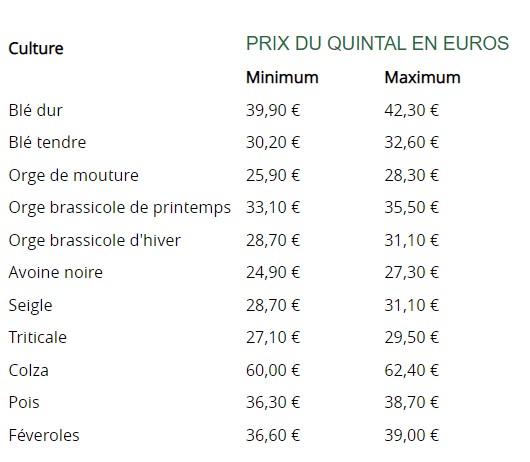 La Commission nationale d'indemnisation des dégâts de gibier (CNI) a fixé, le 19 octobre 2022, les barèmes relatifs aux céréales (blé tendre, blé dur, orge de mouture, de brasserie et de printemps, avoine, seigle, triticale), colza, pois et féveroles pour la campagne 2022-2023. Un barème départemental sera proposé à partir de celui-ci.