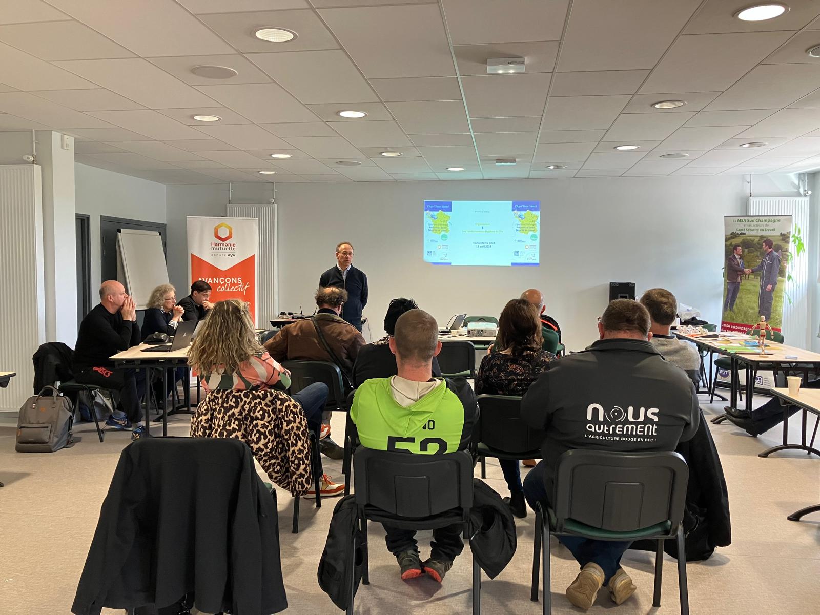 L'AGRI'TOUR SANTE, qui se déroulait pour la première fois en Haute-Marne, a eu lieu le jeudi 18 avril 2024 à Champigny-Les-Langres et Chaumont. Cette journée, organisée en collaboration avec la MSA, Vital Campus, Harmonie Mutuelle et Agrica Prévoyance, était à destination des agriculteurs et salariés agricole. L'objectif étant d'informer et de faire de la prévention, de façon pédagogique et conviviale, sur l'hygiène de vie.